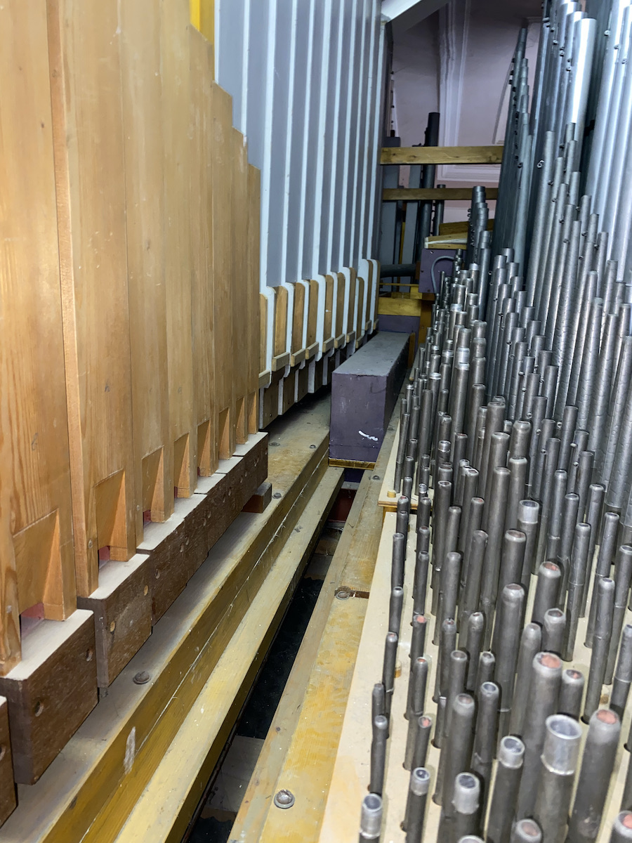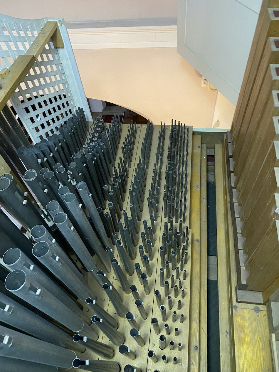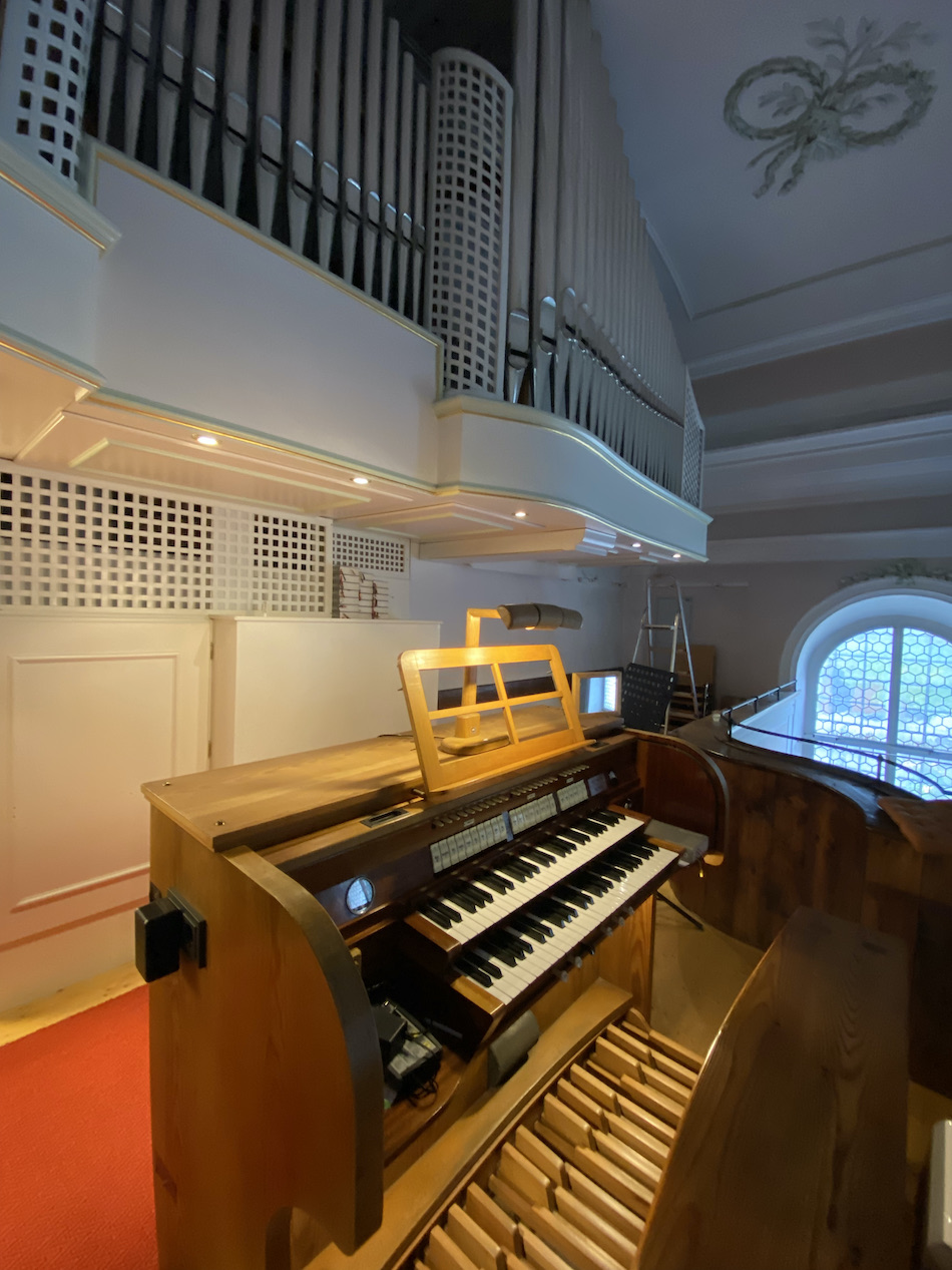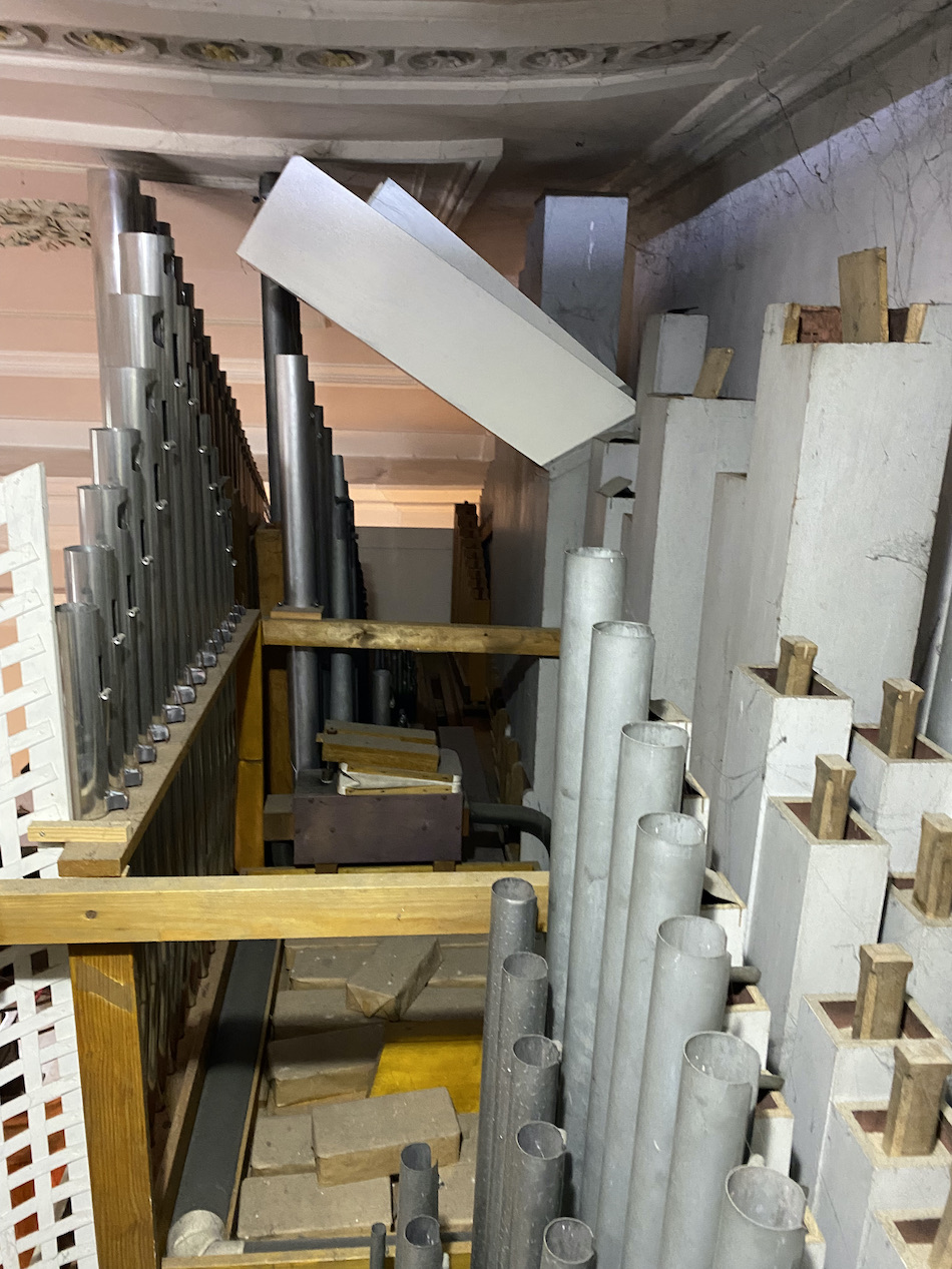 Zustand (2023) spielbar, jedoch stark verschmutzt und verstimmt. Die Pedalumschaltung ist defekt. Viele Trakturmagneten sind korrodiert und/oder verrostet. Die Traktur reagiert überraschend langsam, die Windstabilität ist nicht immer gewährleistet. Die elektrische Sicherheit/Brandschutz ist nicht gewährleistet, sodass v.a. die Oktavkoppeln vorsorglich nicht mehr benutzt werden sollten.