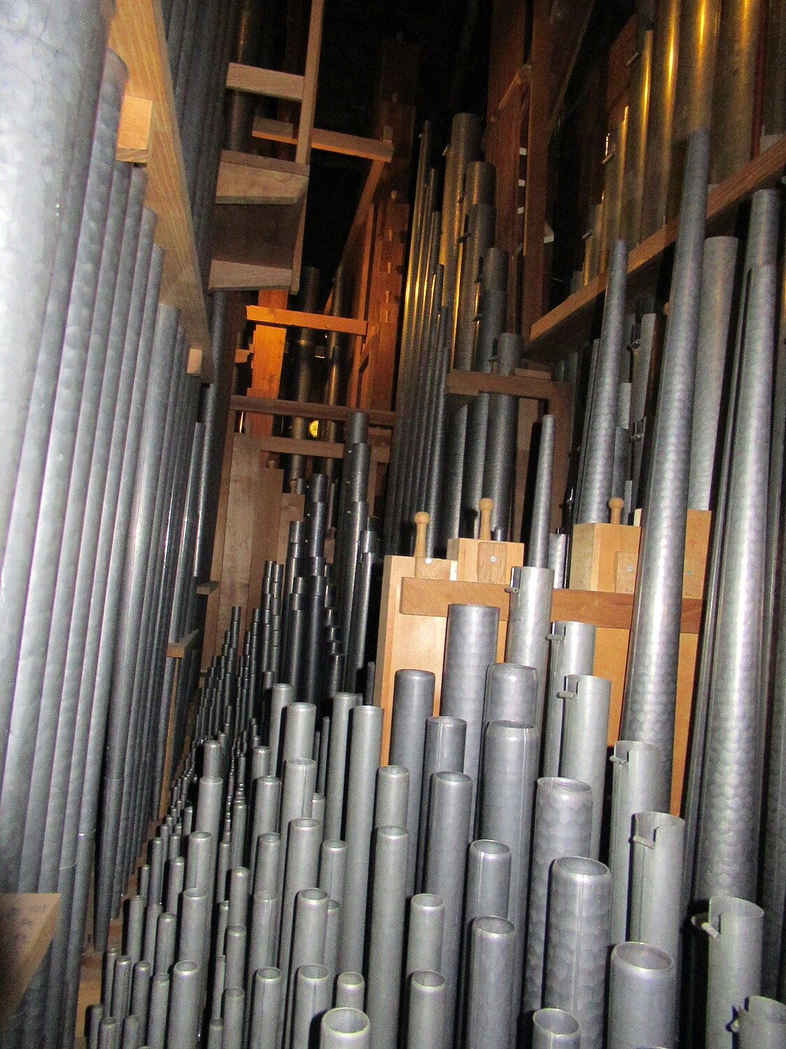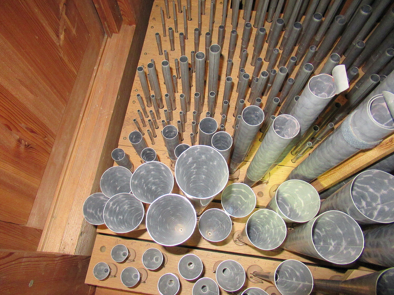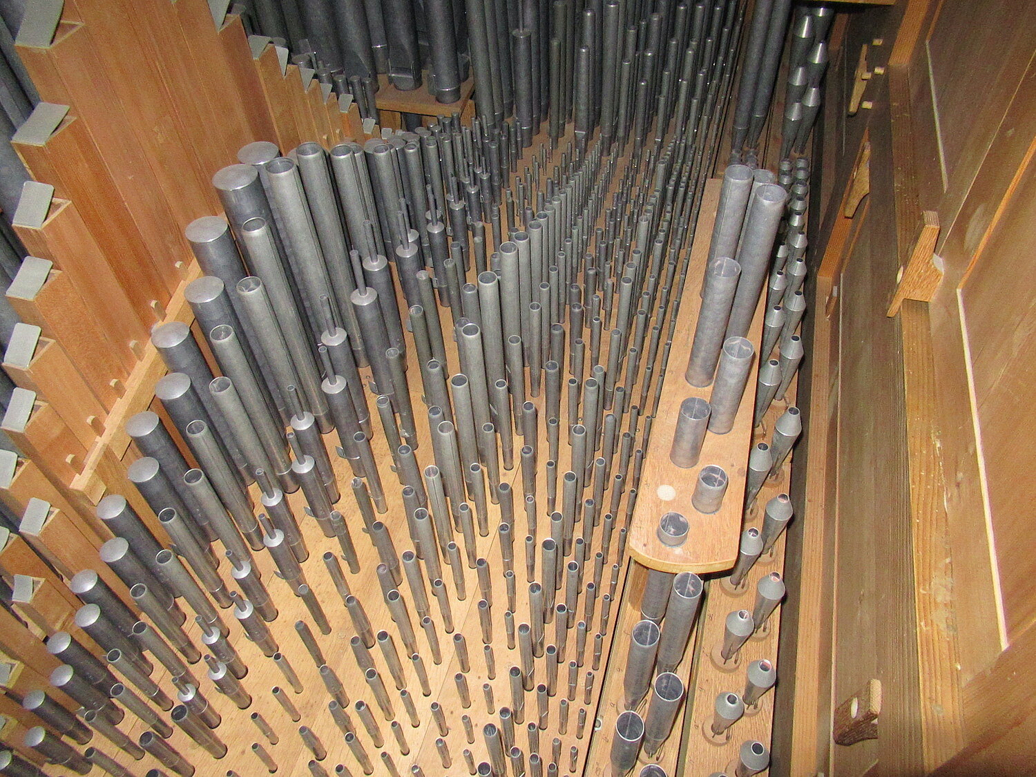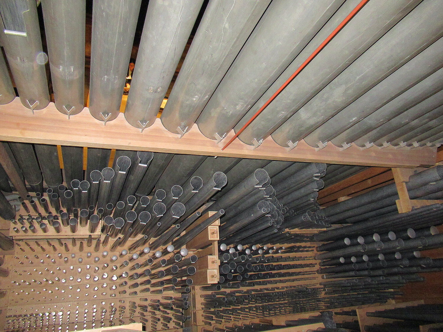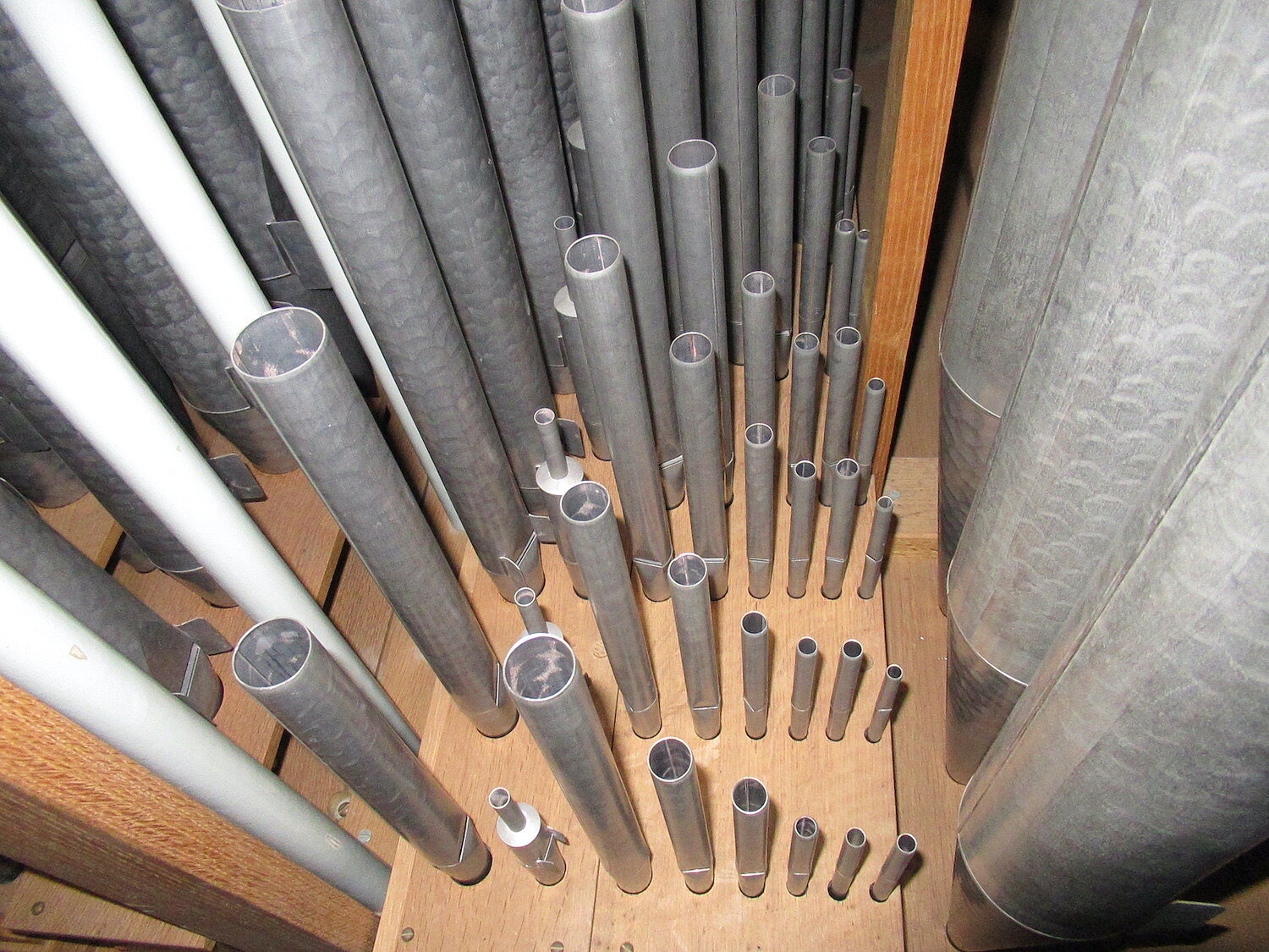 Aus der alten Orgel stammen noch Teile der Register Octave 2' und Holzflöte 8' (ab g°) im Rückpositiv, der mittige 16' Prospekt (ab F) und der 8' des Cornet V im Hauptwerk. Ebenfalls teilweise alt sind die Principale 8' und 4' im Schwellwerk und der Prästant 16' (ab C) im Prospekt) wie der Subbass 16' im Pedal. Insbesondere die alten Holzpfeifen sind jedoch tiefgreifend überarbeitet worden. An den metallenen Prospektpfeifen von 1883 wurden sämtliche Vorderbärte entfernt.