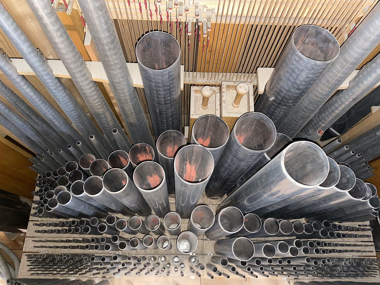 1990/91 wurden die Vierungsemporen neu aufgebaut. Die Gehäuse sind Neuschöpfungen. Die heutige Hof- und die Heilig Geist Orgel sind als zeittypische Instrumente gänzlich neu erstellt worden. Die Orgel bestitzt einen Schwimmerbalg als Motorbalg und unter jeder Windlade zusätzliche großvolumige Schwimmer als Stoßbälge. Die Windcharakteristik ist entsprechend starr.