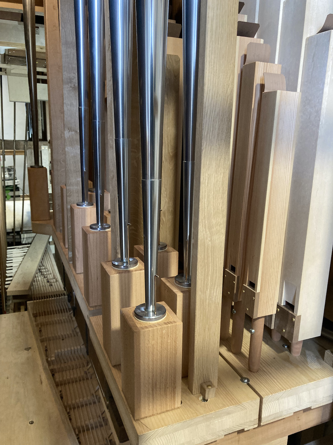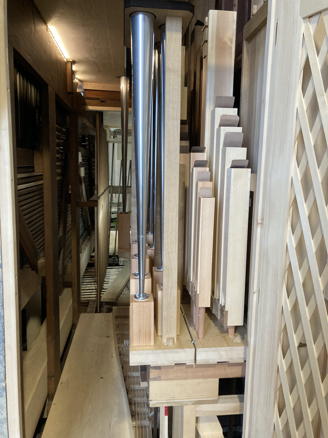 Das Salicional 8' des Positivs, welches 1842 ursprünglich im Dom als Dolce 4' diente und 1860 als Salicional zum 8' umgestelllt worden war, stand ab 1970 z.B. in Teilen im Piffaro des Pedals. Bei den jetzigen Arbeiten wurde es gemäß den historischen Signaturen wieder angelängt, zahlreiche fehlende Pfeifen waren zu rekonstruieren. C-H ist wie schon einmal 1860-1904 dem Gedact entnommen, wozu die historischen Bohrungen reaktiviert wurden. Dieses Register aus der Werkstatt Moosers kommt erstaunlicherweise komplett ohne Ansprachehilfen aus. Da in den Archivren belegt war, dass die Verführungen in der Lade schon immer für Problene sorgten, wurden die Pfeifen A bis H noch nachträglich selbstständig gebaut. Für mehr reichte der Platz nicht. Die aus Saalfelden übernommene Octav 2' musste durchwegs angelängt werden, da diese bei der dort 1995 durchgeführten Restaurierung erheblich zu kurz abgeschnitten worden war. Die 1832 in Saalfelden für eine Zunge geplante Pedalschleife wurde entsprechend mit einem für Salzburg typischen "Bombardon 16'" besetzt. Die Spieltraktur ist nach der Restaurierung wesentlich leichtgängiger geworden. Lediglich die Manualkoppel erfordert einen größeren Kraftaufwand, was aufgrund deren Konstruktion jedoch historisch schon immer so war.