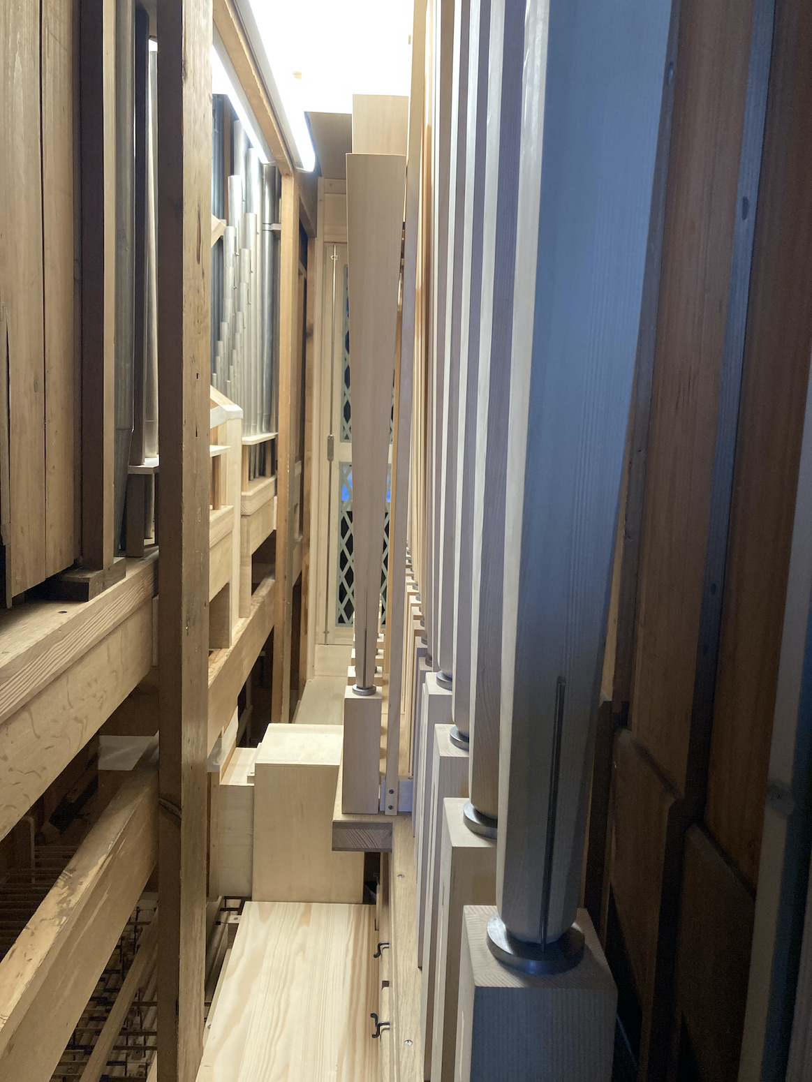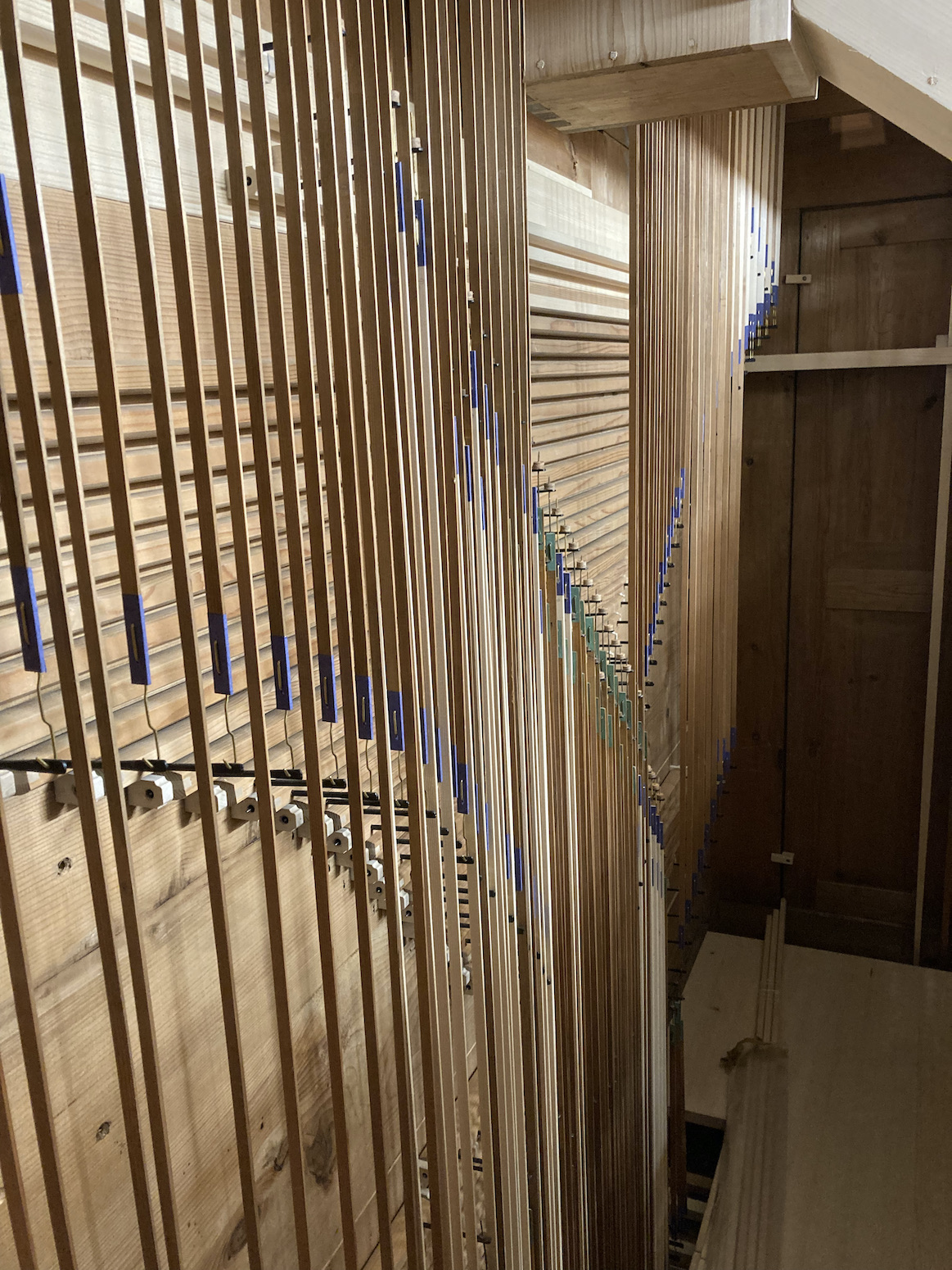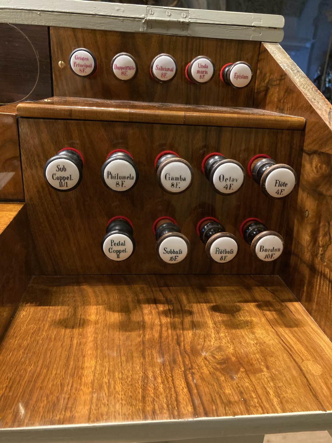 Pedal C-c1: Violon 16', Octavbass 8' (aktiviert die Philomela von C-f° über eine eigene Schleife und klingt dann auch im HW mit)