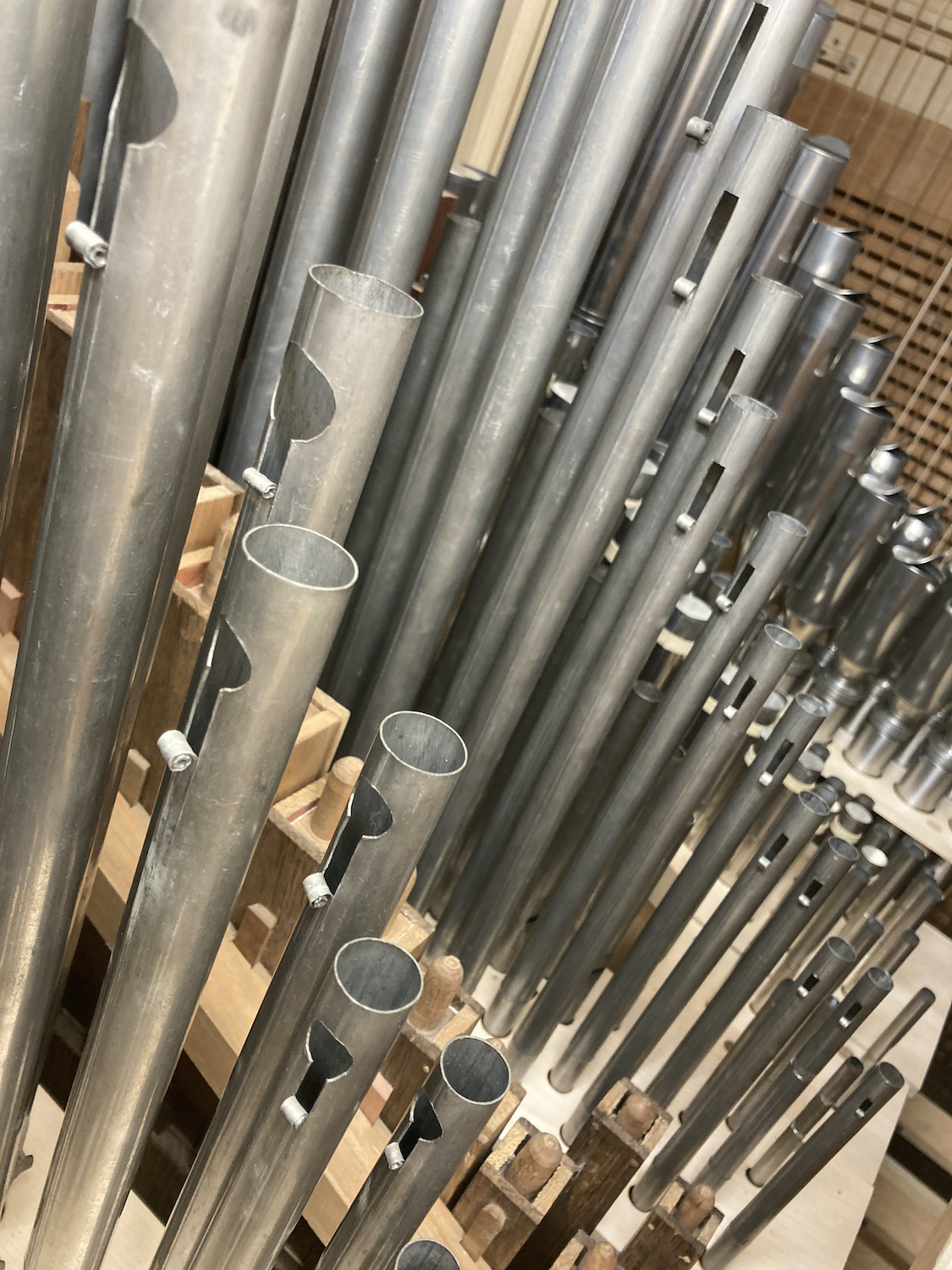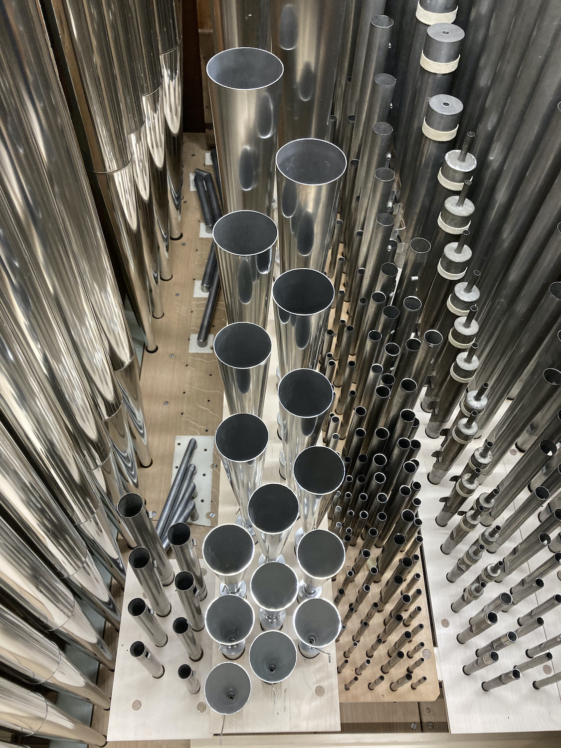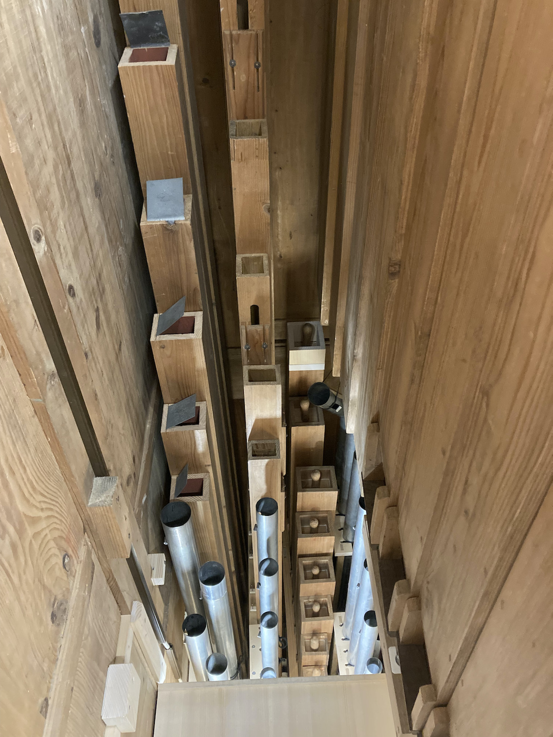 Pedal C-c1: Violon 16', Octavbass 8' (aktiviert die Philomela von C-f° über eine eigene Schleife und klingt dann auch im HW mit)