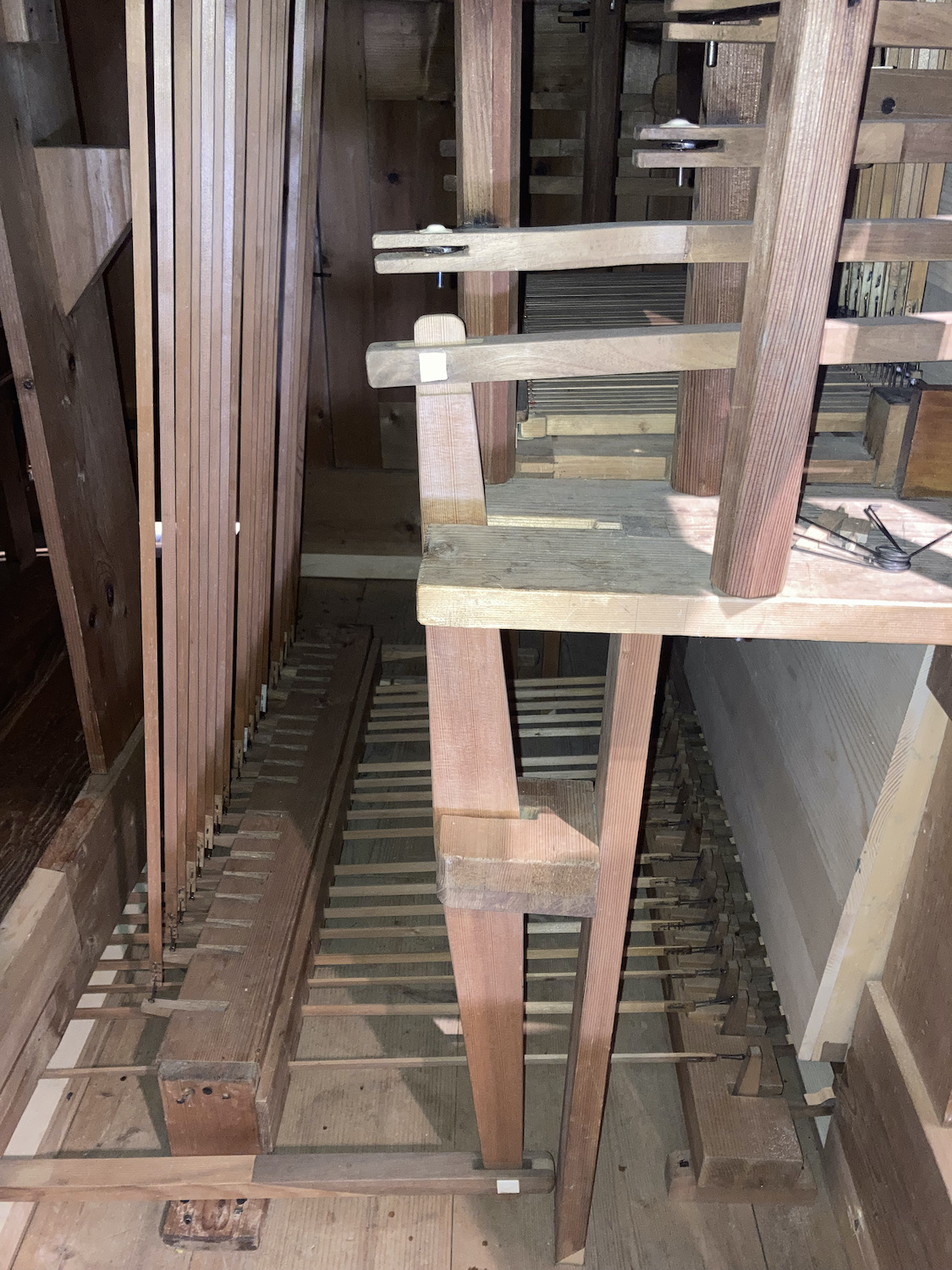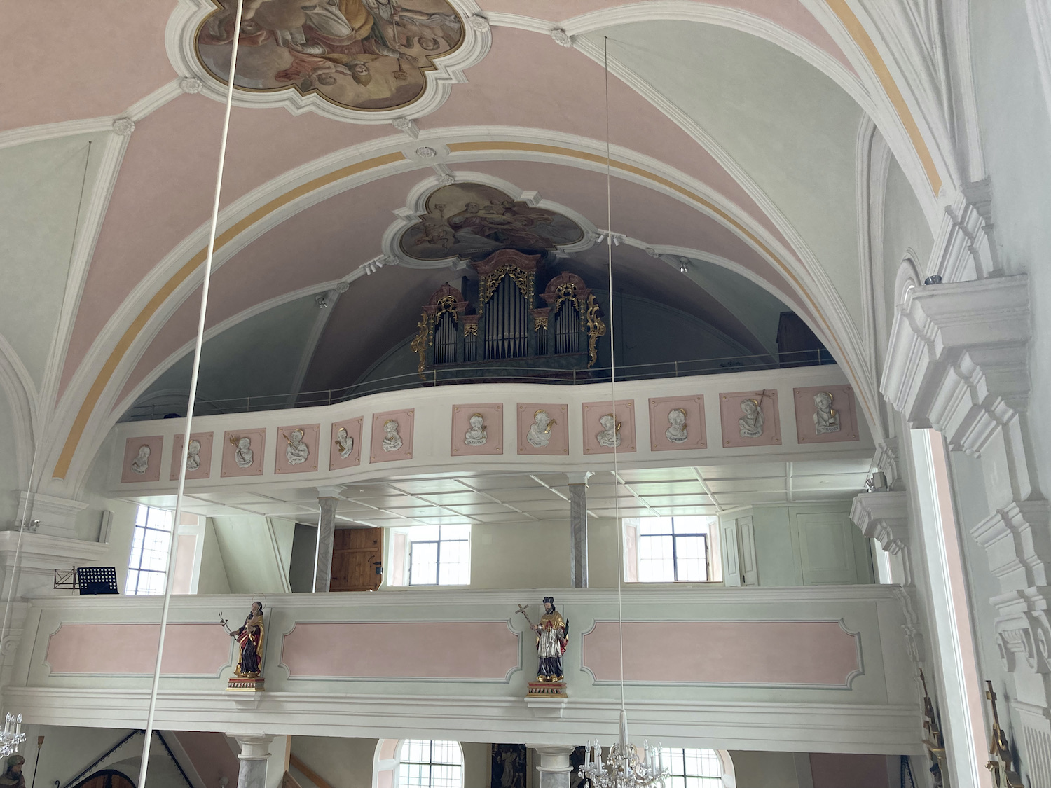 Die Balganlage befand sich ursprünglich auf dem Dachboden. Zu einem unbekannten Zeitpunkt wurde ein neuer Balg in einem grob gearbeiteten Bretterverschlag links neben der Orgel aufgestellt. Die Quinte 3' wurde vermutlich bereits im 19. Jahrhundert durch eine Flauto Stop. 8' ersetzt, was zu größeren Änderungen der Schleifenbesetzungen führte. Des weiteren ist 1909 durch Arthur Schreieck aus Lannach i. Lechtal auf dem ehem. Stimmgang vor dem Pedal eine pneumatische Zusatzlade mit den Registern Gamba und Salicional 8' installiert worden. Dabei wurde der Winddruck auf 78mmWs erhöht, was zu einem Stimmton von 449Hz bei 15°C führte.