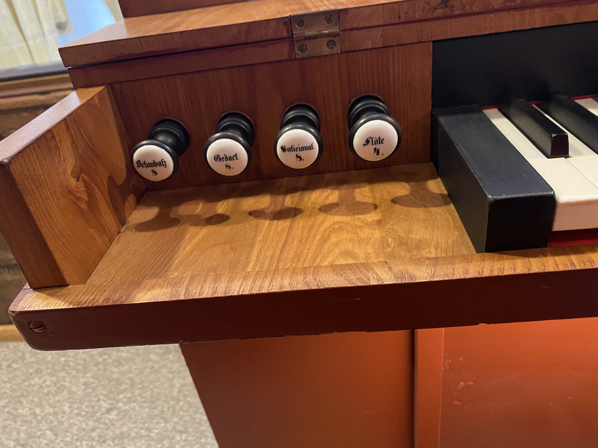 2004 Entfernung dieser Register und Restaurierung durch Fritz Mertel jun., Salzburg-Gnigl. Der Doppelfaltenbalg wurde dabei komplett neu gebaut. Um die Stimmtonhöhe zu erniedrigen erhielten alle Metallpfeifen Stimmringe, die durch Zerschneiden alter Pfeifen gewonnen wurden. Diese warn jedoch nicht selbstspannend, sodass sie ständig rutschten und keine dauerhafte Stimmhaltung gegeben war. Da das Pedal von verkürztem Umfang eine andere Mensur als die heutigen Normen aufweist, ist das Pedalspiel auf dem Instrument nicht ganz einfach.