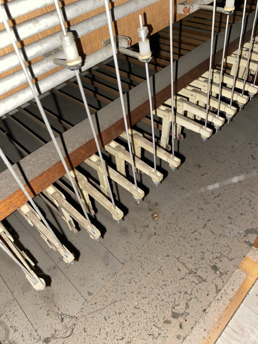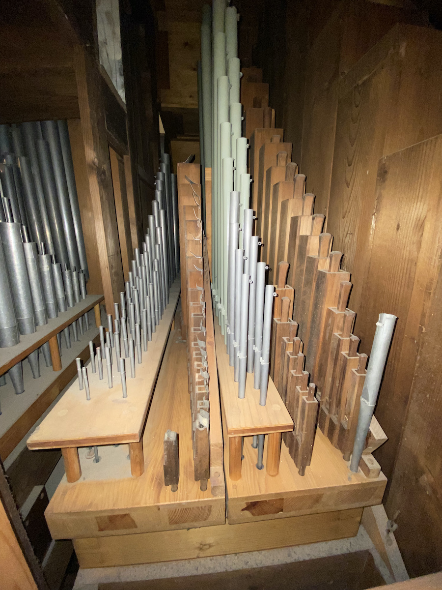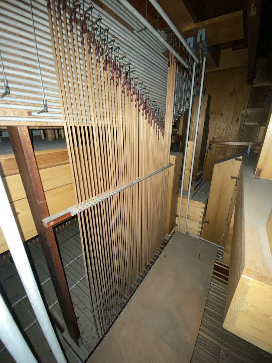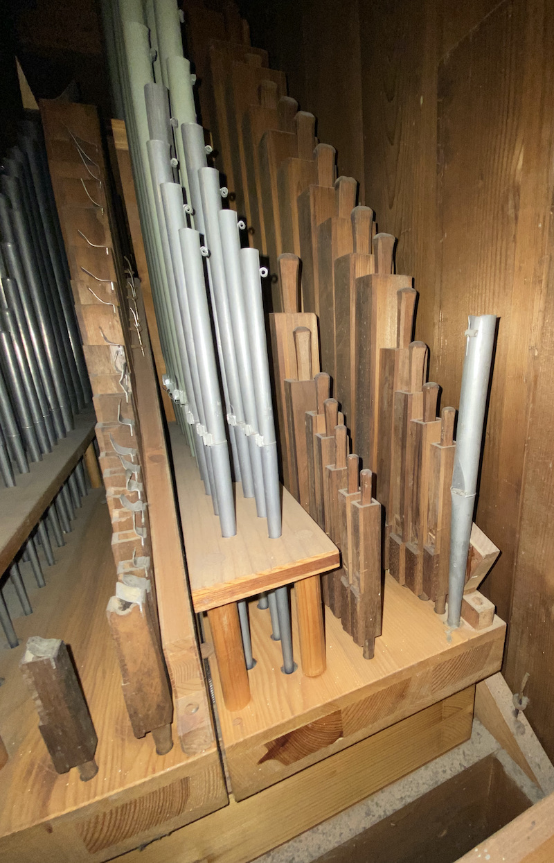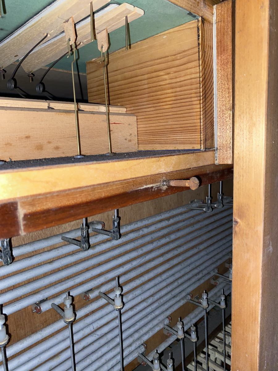 | Spielhilfen | Manualkoppel, I/P, II/P (als Fußrasten) |