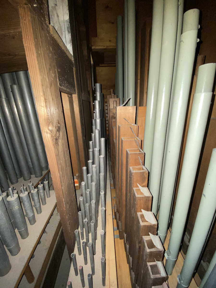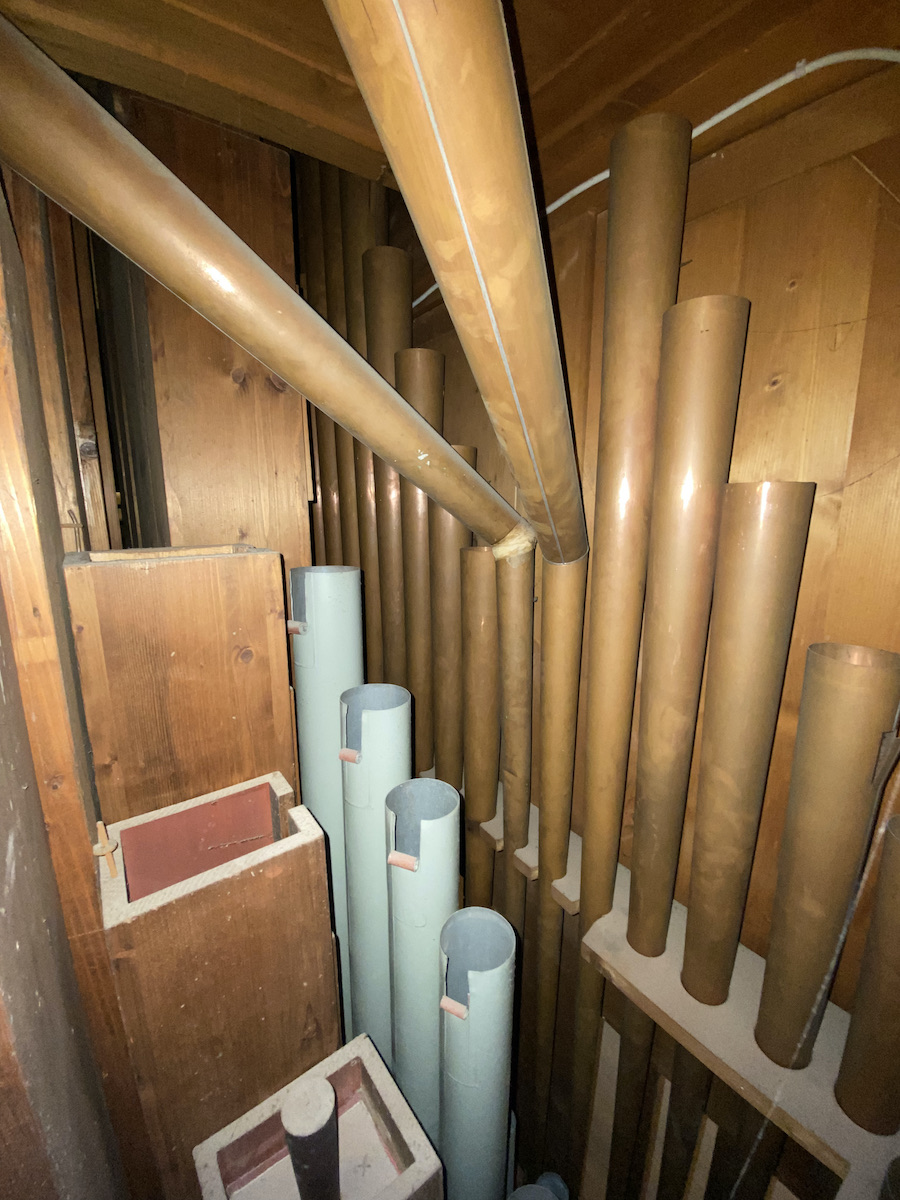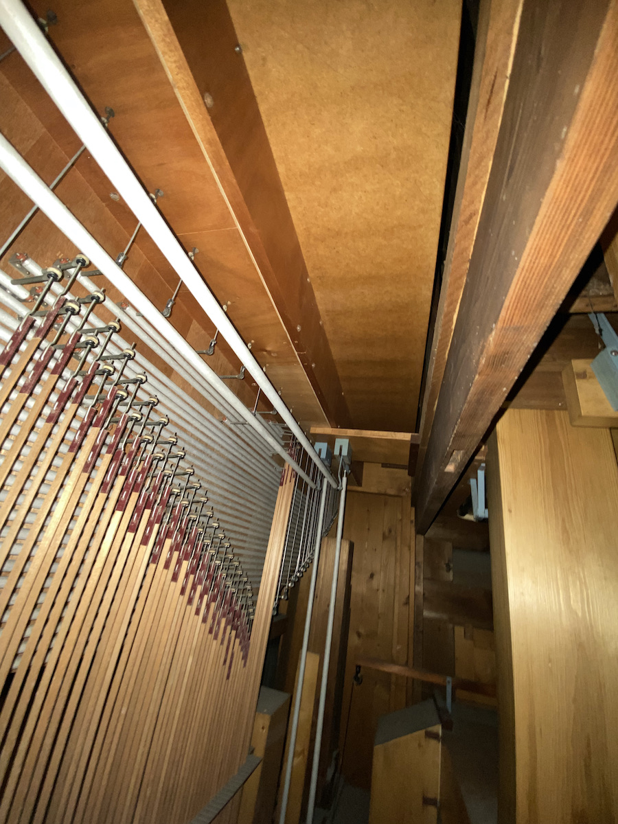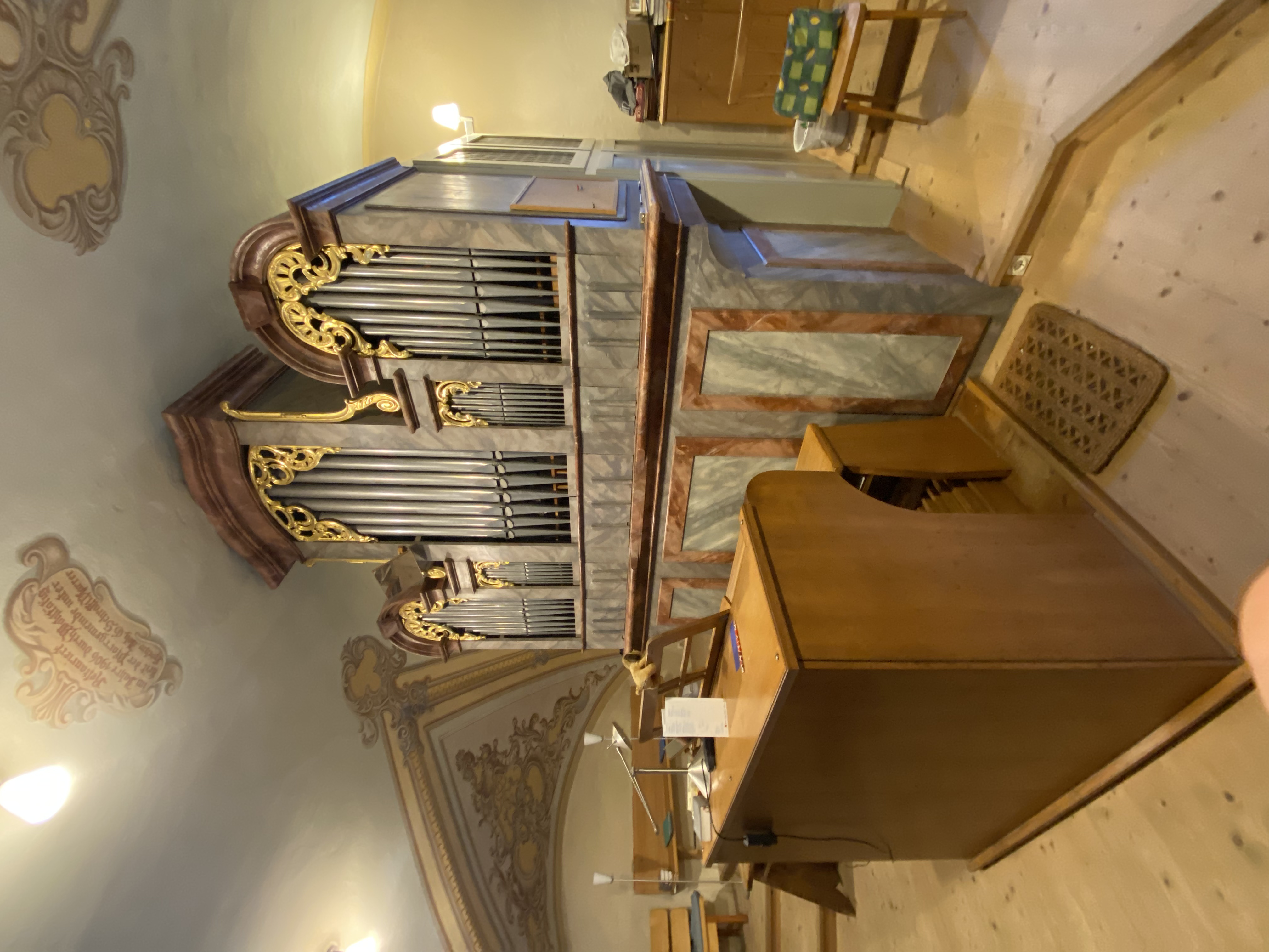 | Spielhilfen | Manualkoppel, I/P, II/P (als Fußrasten) |