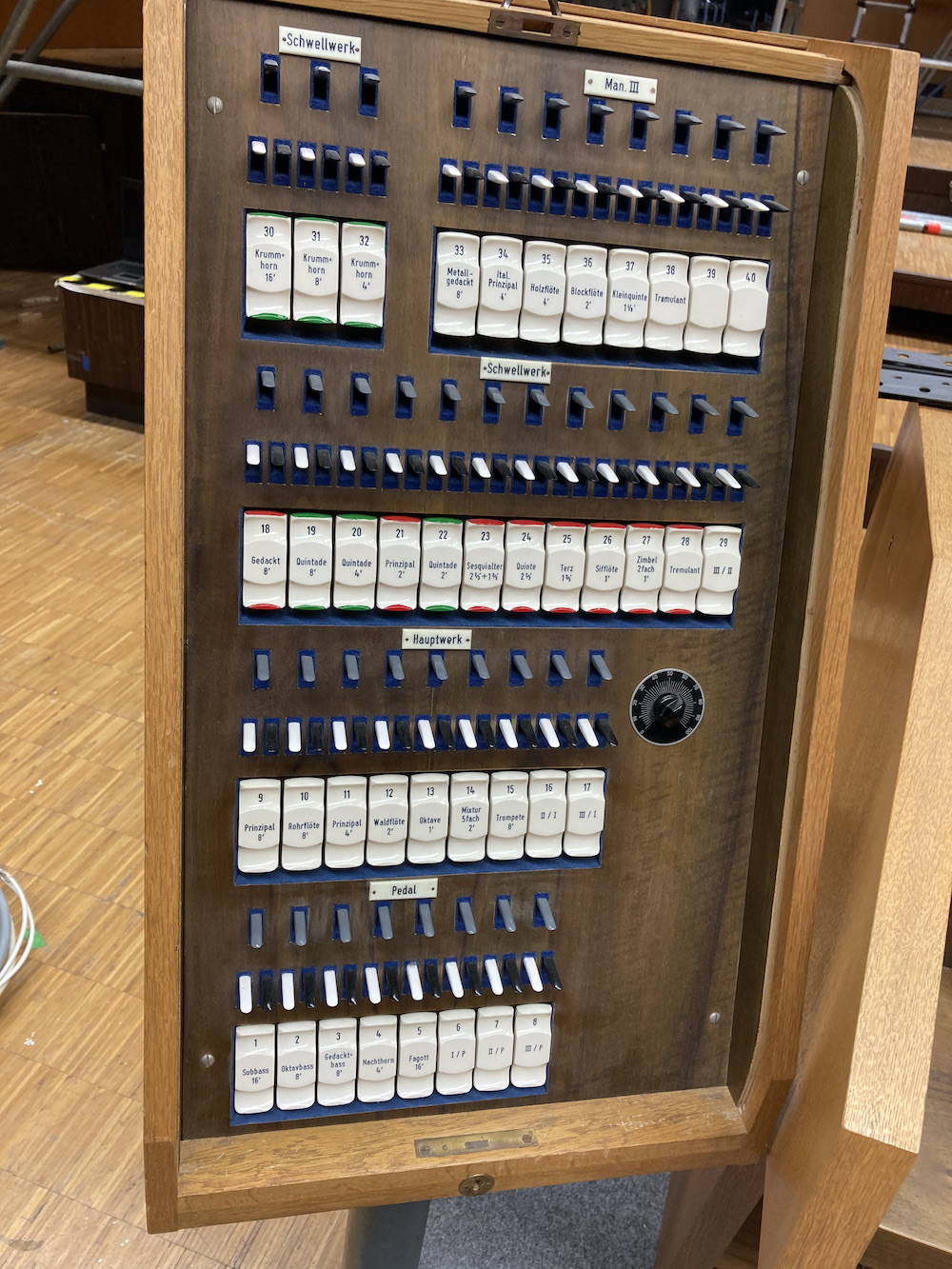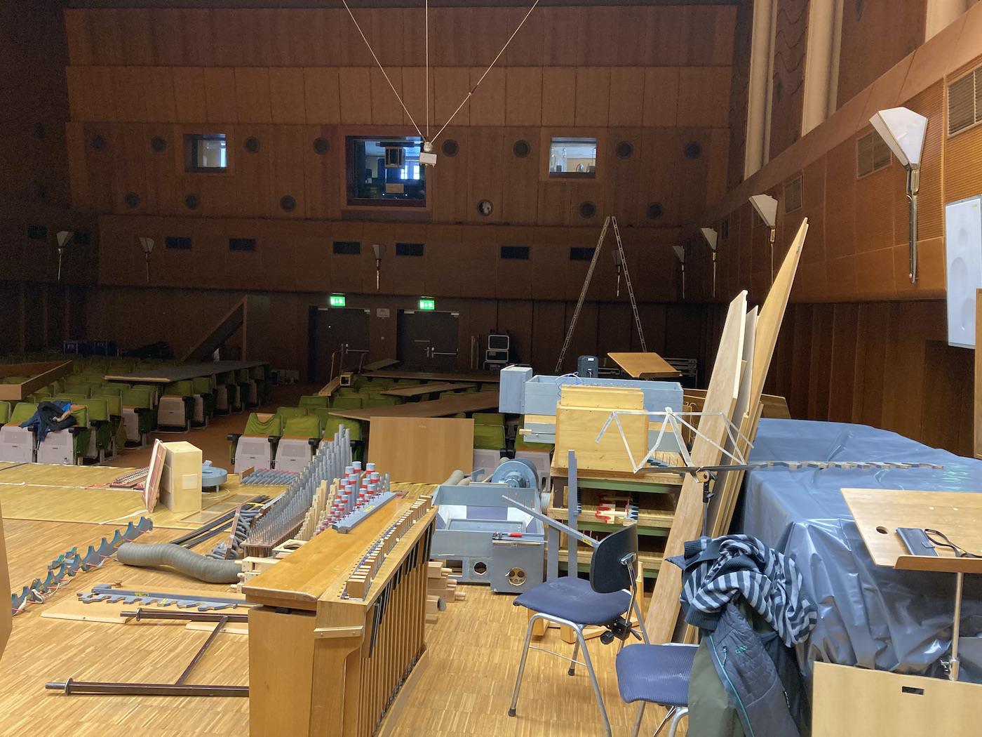 1970 Erweiterung um ein seitliches Positiv als eigenständiges drittes Manual und daraufhin Zusammenfassung beider Schwellwerksladen auf dem 2. Manual. Mit der Orgel wurden unzählige Aufnahmen erstellt. Zudem spielten bei den von 1969 und 1991 stattfindenden sonntäglichen Orgelmatineen zahlreiche berühmte Interpreten u.a. Pierre Cochereau, Daniel Chorzempa, Peter Hurford usw.. Ein 1981 im Zuge der Studiosanierung geplanter großzügiger Umbau der Orgel kam nicht zustande. 2002 wurde die Wartung eingestellt und das Instrument in der Folge kaum noch bespielt.