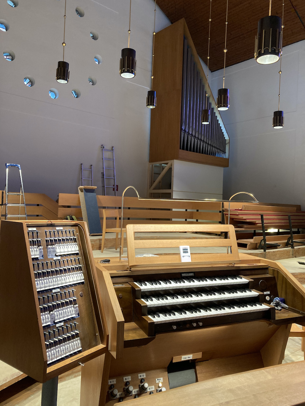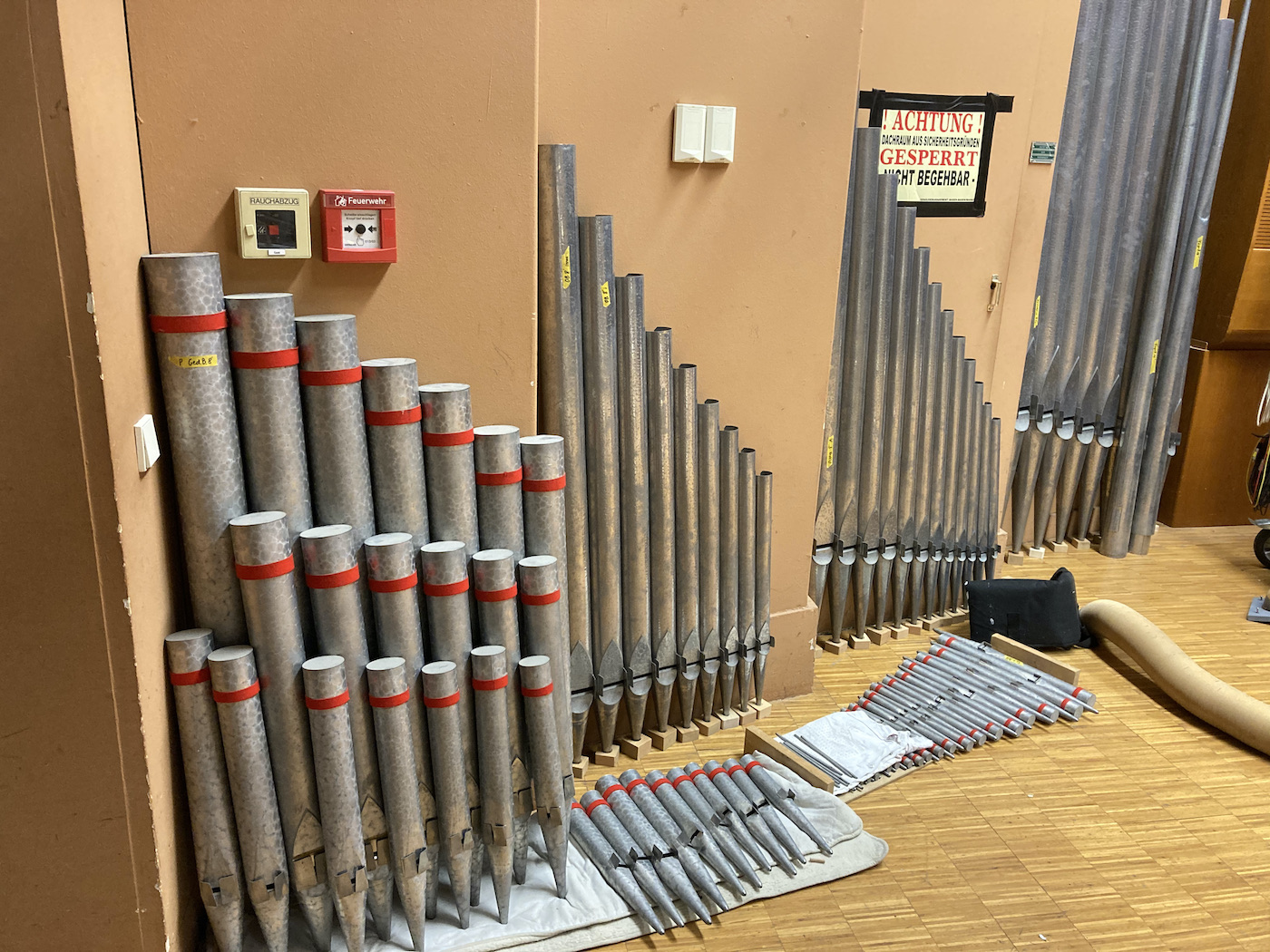 Aufgrund der neuen Aufstellung mit Untergehäusen anstatt auf Stahlträgern ist die bislang sehr umständliche, bzw. beengte Wartungsmöglichkeit erleichtert worden. Die früher in einem Nebenraum und hinter Wandverkleidungen platzierte Windversorgung ist ebenfalls in den neuen Unterbauten zu stehen gekommen. Vom dritten Manual ist ein aus optischen Gründen hinter dem Gehäuse des Hauptwerks unsichtbar platziertes Solowerk mit drei vielseitig einsetzbaren Registern anspielbar. Alle Register dieses Werks sind bis in die Kontraoktave ausgebaut. D.h. bei Nutzung der 16'-Koppel ist der Umfang bis CC vollständig ausgebaut. Die bestehende neobarocke Intonation wurde bis auf die leichte Verstärkung der im Raum akustisch benachteiligten tiefen Frequenzen übernommen, sodass viele Register ihre charakteristischen, geradezu perkussiven Ansprachegeräusche d.h. z.B. spuckende Prinzipale und Gedeckte behalten haben. In der besonders die hohen Frequenzen bevorzugenden Akustik der Kirche entwickelt die Orgel eine überraschende Klangkraft und Verschmelzungsfähigkeit, wie sie im akustisch stark abgedämpfen Baden-Badener Studio bislang nicht zur Geltung kam. Die Orgelweihe fand am 2.10.2021 statt.