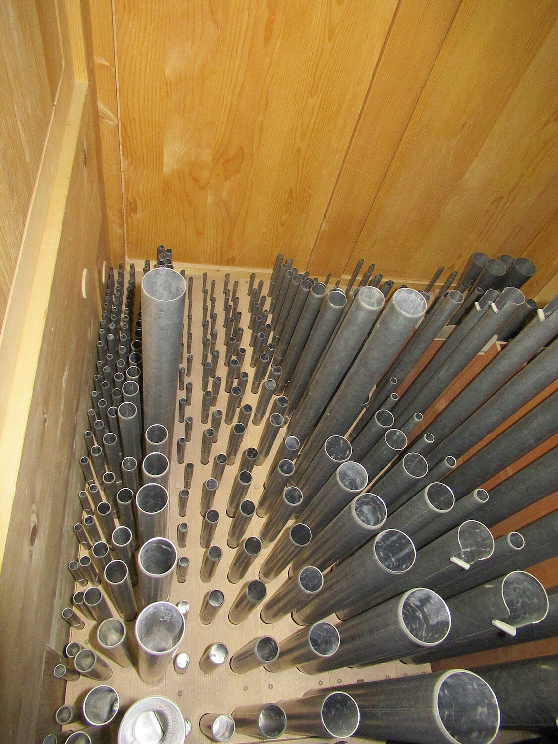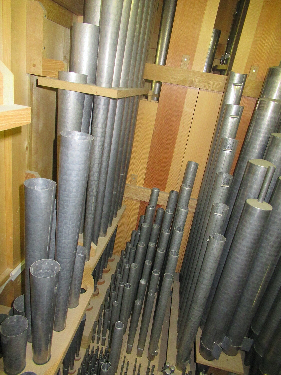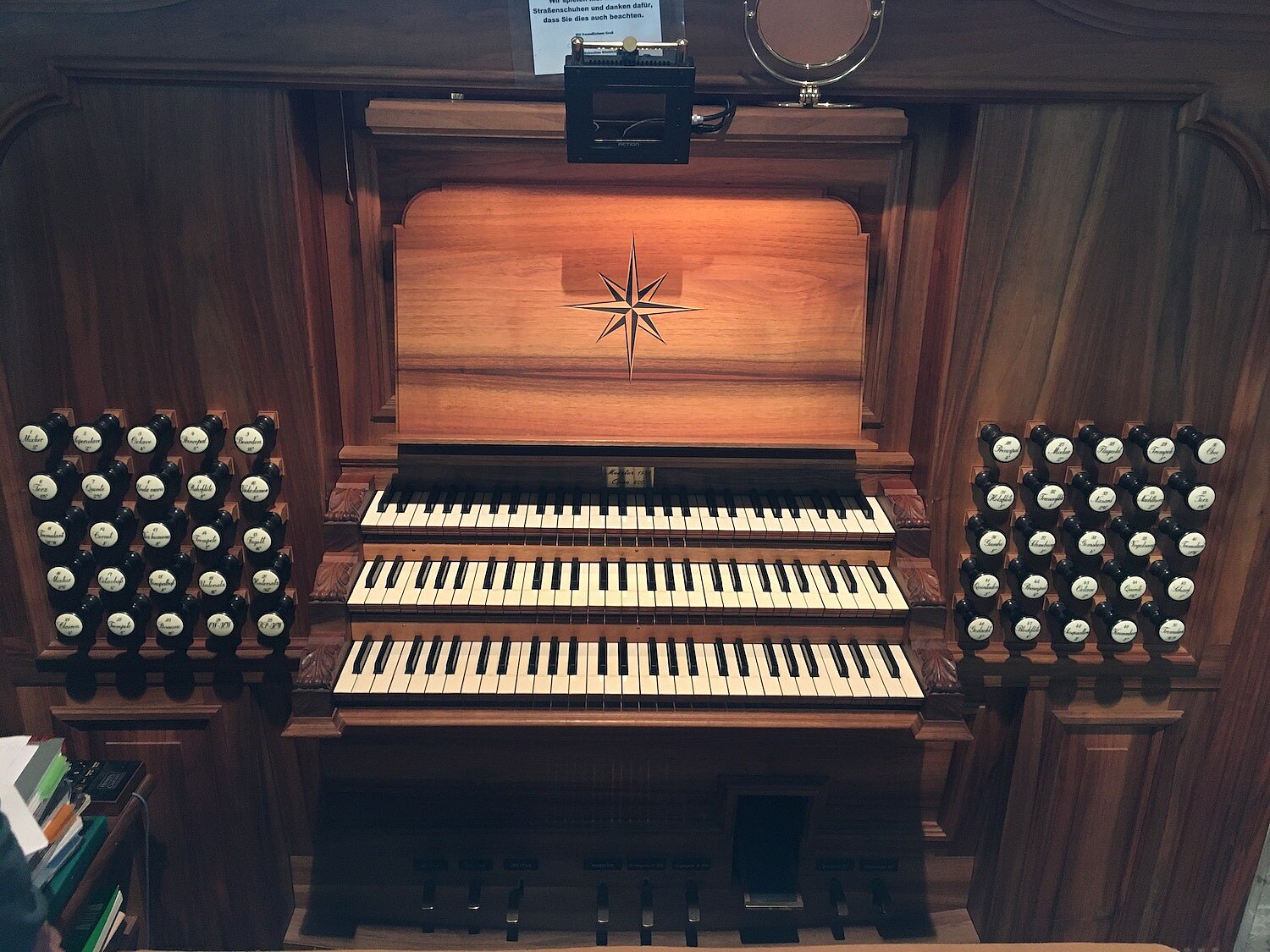| Spielhilfen | Koppeln (I/II, III/II, I/P, II/P, III/P), Wechseltritte (Mixtur HW, Trompete 8' HW, Trompete 8' SW, Hintersatz 32', Posaune 16'), Vogelsang (3 Pfeifen) |