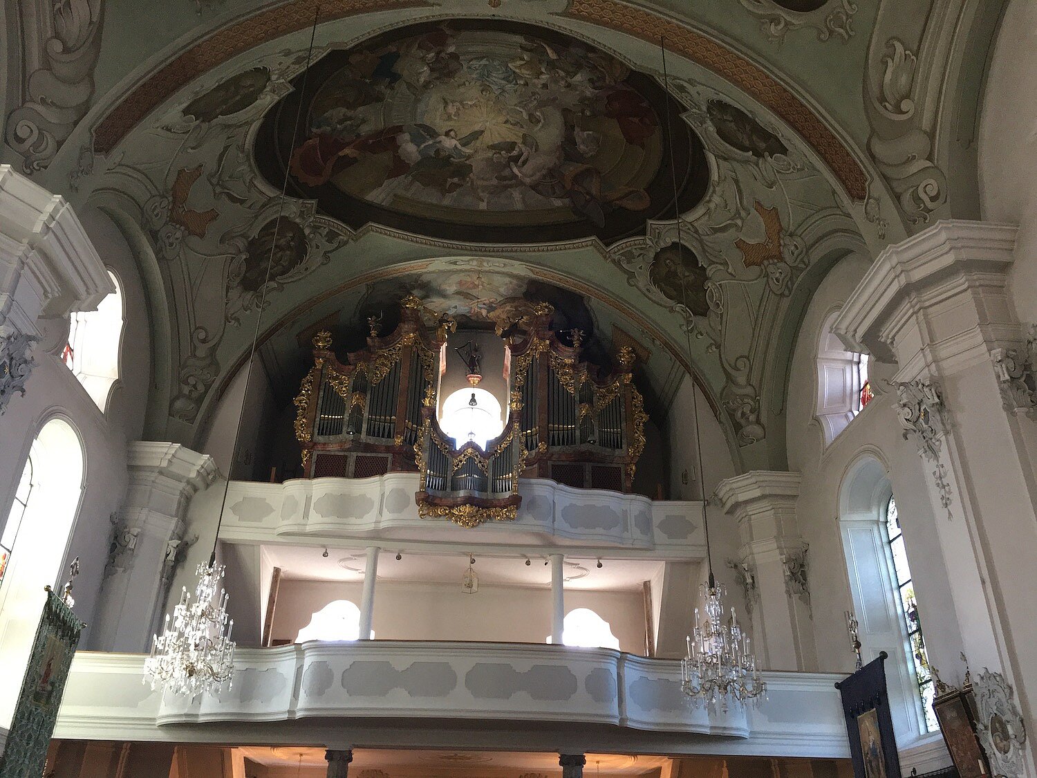 1779 Neubau Anton Baier, München. 1831 Umbau oder Reparatur, 1919 Neubau durch Dreher & Mertel, Salzburg. Mit 30 Registern auf zwei Manualen, 10 Kollektive bei pneumatischen Kegelladen. 1962 Umbau Reinisch-Pirchner, Steinach mit 7 neuen Registern und Umstellung des zweiten Manuals in neuem Gehäuse zwischen beiden Orgelflügeln. 1990 Abbruch der Orgel.