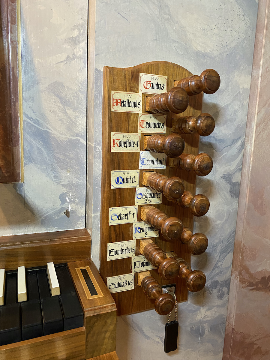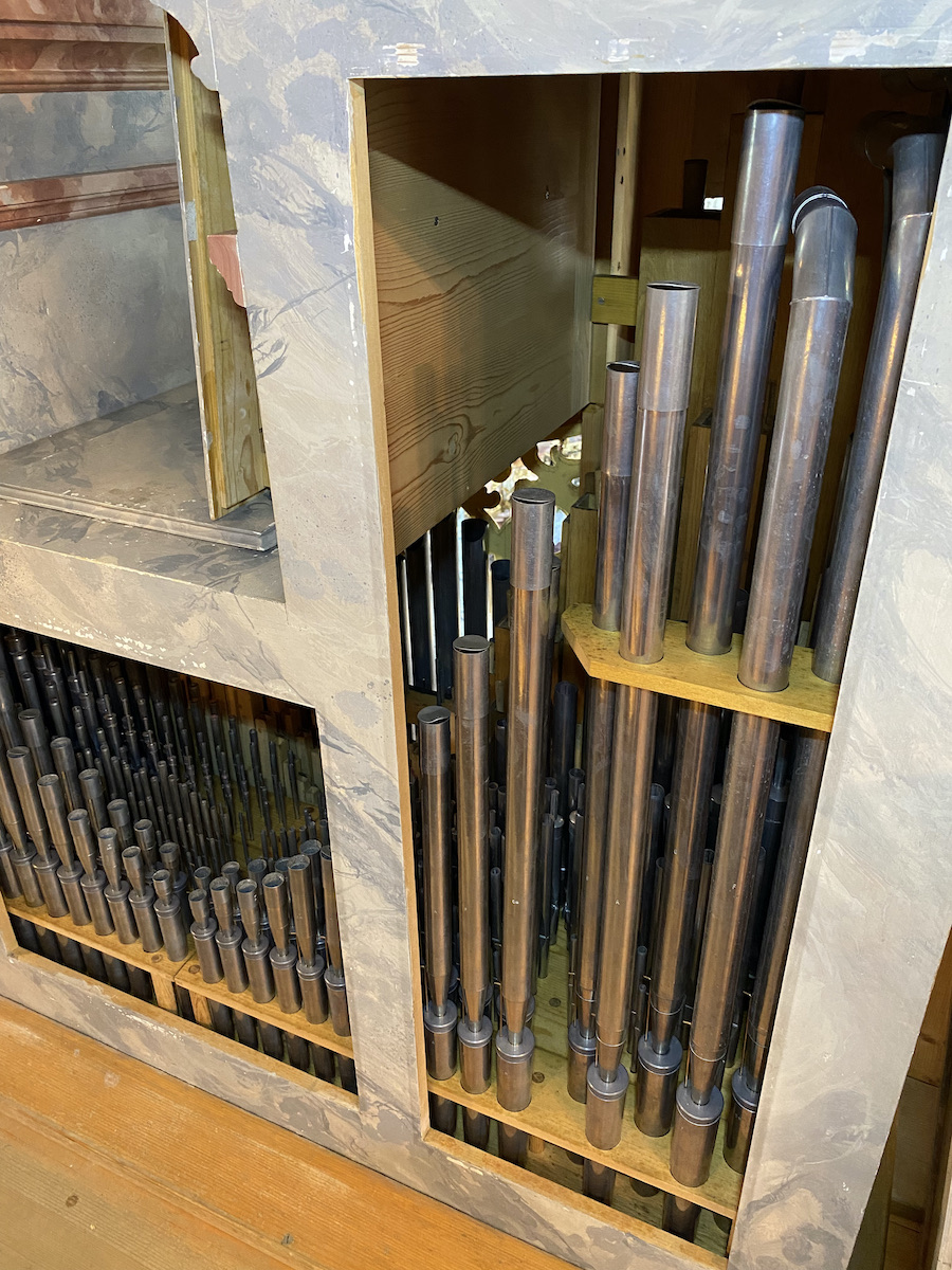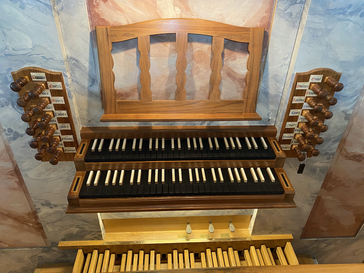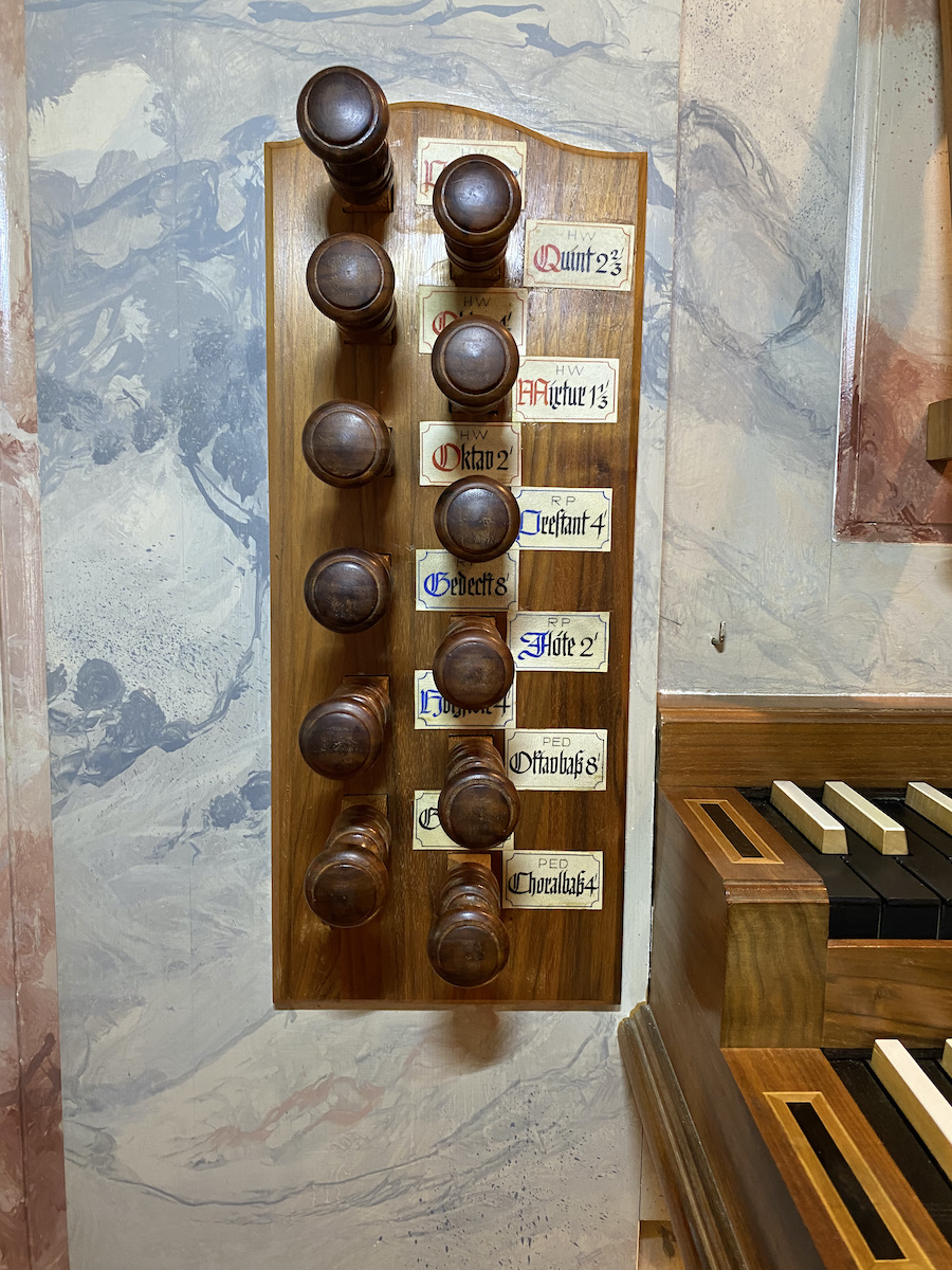 2023 Reinigung und technische Instandsetzung durch Orgelbau Alois Linder, Nußdorf am Inn. Der Sesquialter im RP beginnt ab c°. Die dortige Flöte 2' ist als Kuriosum bis g3 als Rohrflöte gebaut.