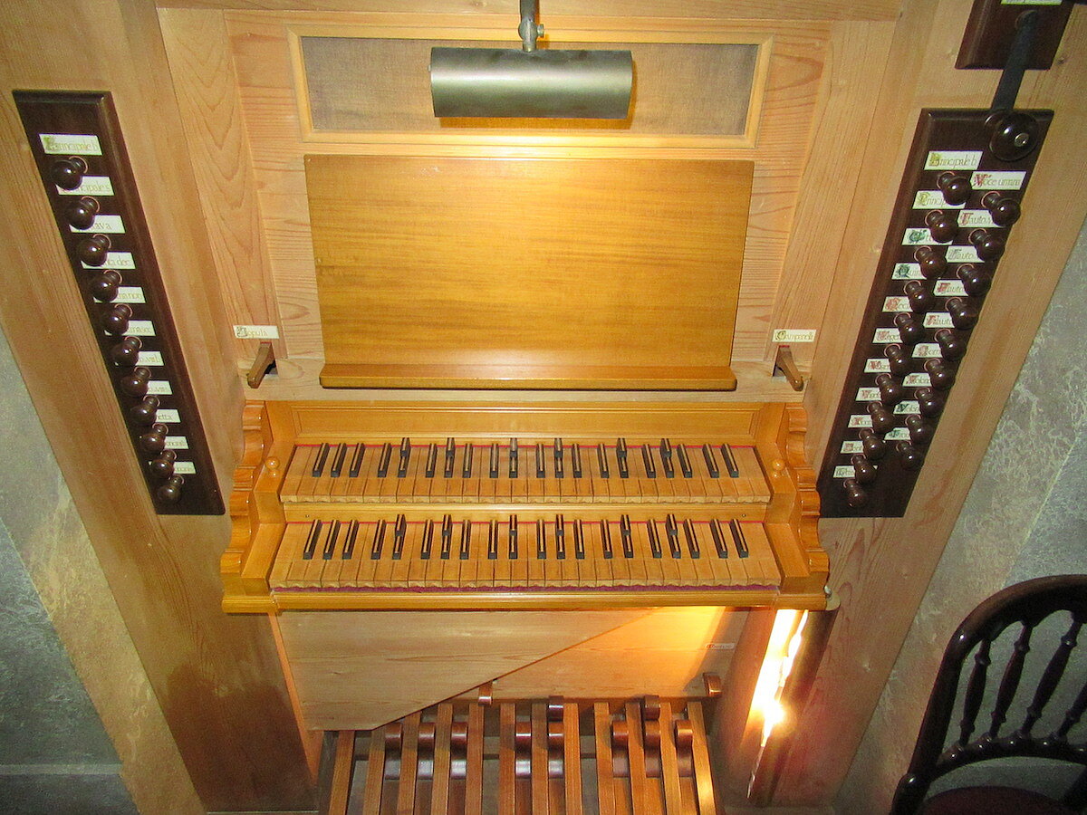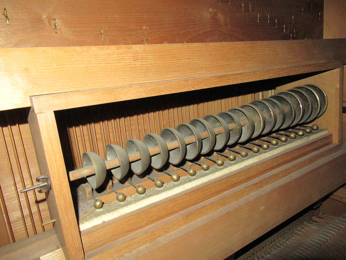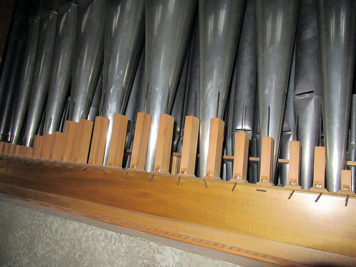 | Spielhilfen | Tritt Ausschaltung Pedalkoppel II Tritt Tamburo (nur aktiv wenn Contrabassi eingeschaltet) Ripieno GO (Kurbel, ohne Principale 8') |