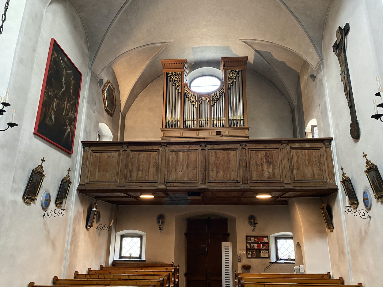 Bis zum Neubau durch Christian Erler, Schlitters im Jahre 2000 befanden sich zwei Emporen in der Kirche. Auf der oberen Empore befand sich ein pneumatisches Werk der Firma Reinisch.