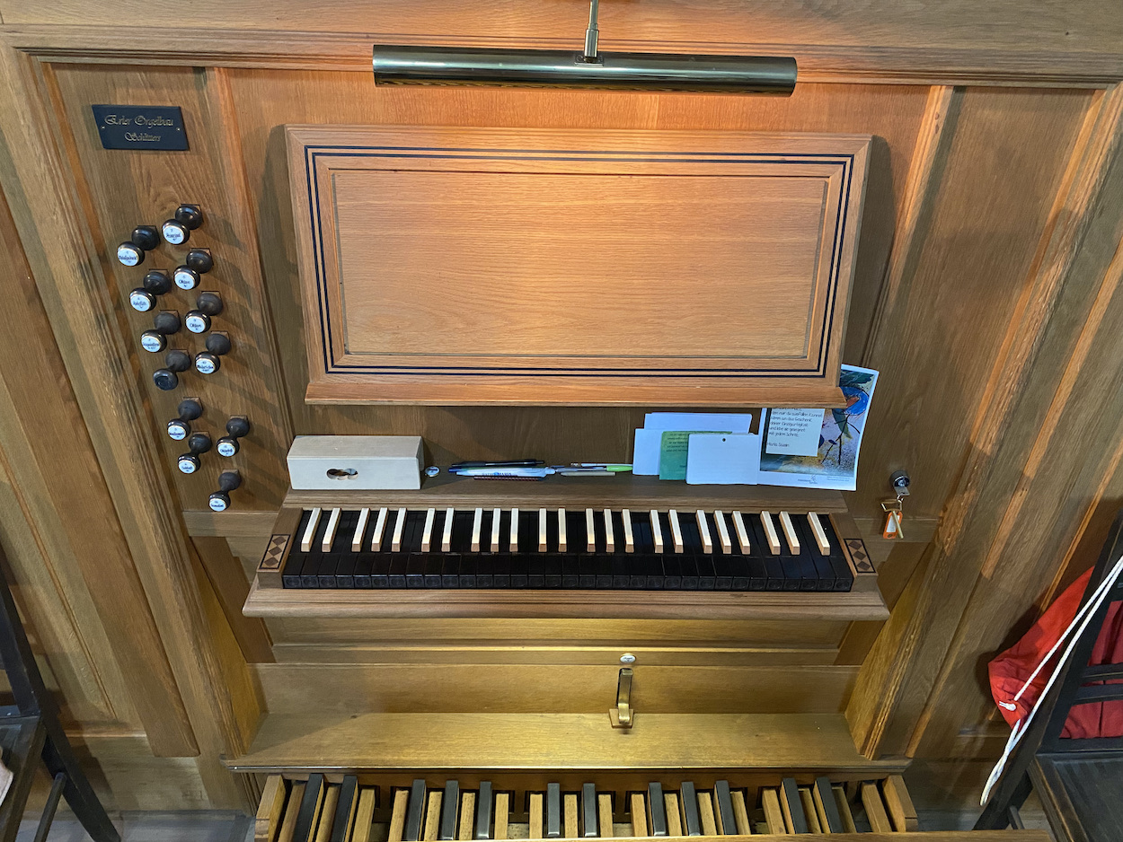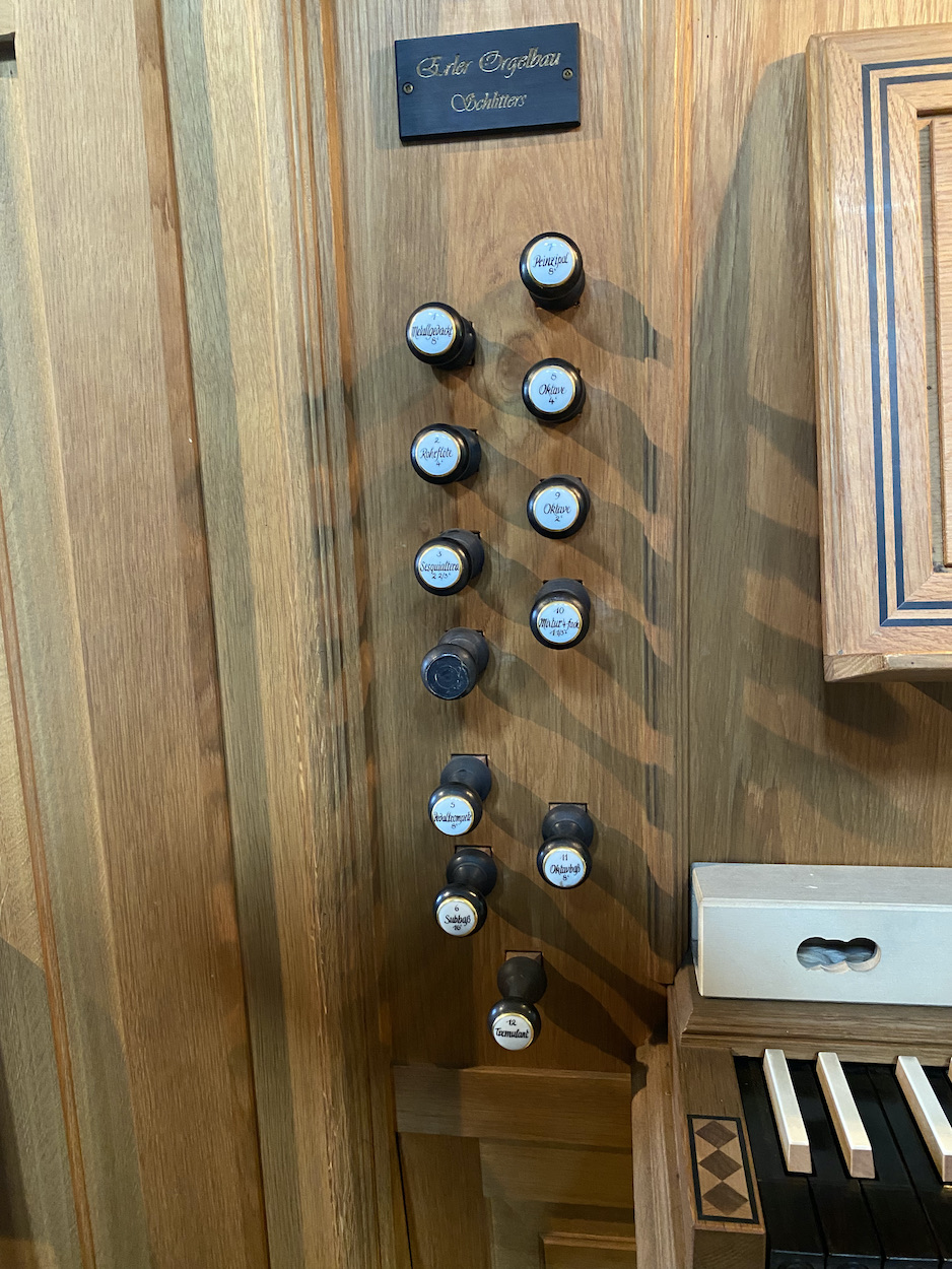 Die Intonation ist generell eher kräftig angelegt, sodass bei der Begleitung kleinerer Gemeindegruppen bereits wenige Register ausreichen. Die Pedaltrompete ist eine Transmission aus dem Manualwerk.